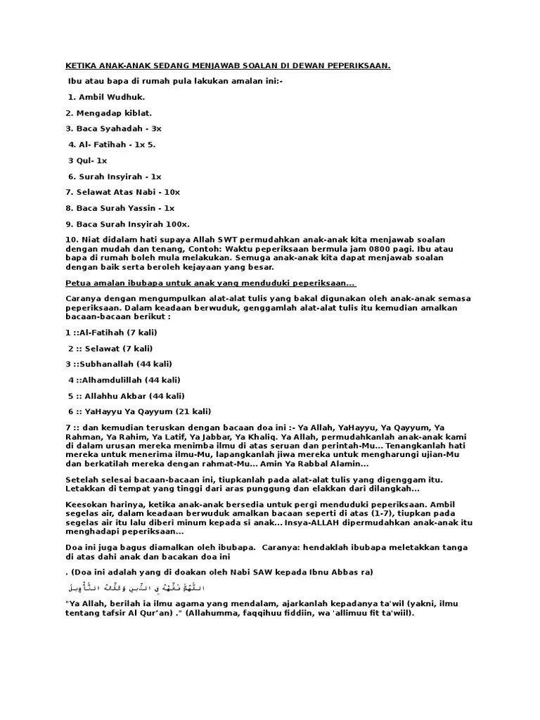 Doa daripada ibubapa untuk anak sedang menghadapi peperiksaan doa anak sahabat. 7 amalan dan zikir untuk ibu bapa amalkan ketika anak sedang menghadapi peperiksaan supermom with superkids. Ini doa & zikir penting ibubapa aplikasi versi terbaru for gratis. Doa mohon dikaruniai anak yang sholeh doa gambar lucu orang. Doa daripada ibubapa untuk anak sedang menghadapi peperiksaan shafiqolbu. Jika anda ibu atau bapa kepada anak tersebut, pastikan anak anda mengamalkan doa dan zikir untuk lulus periksa. Aamiin ,semoga dipermudahkan segala urusan anak2 ku danisya kamalia untuk menghadapi peperiksaan upsr kai tenangkanlah hati mereka lapangkanlah dada mereka . Watch popular content from the following creators: Download anak nak exam apk untuk android. Bacalah zikir ini sepanjang anak sedang exam …. Bacalah zikir ini sepanjang anak sedang exam.